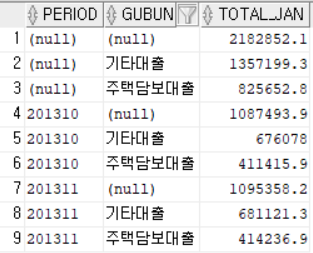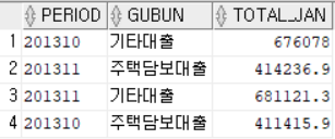 SELECT period, gubun, SUM(loan_jan_amt) total_jan
