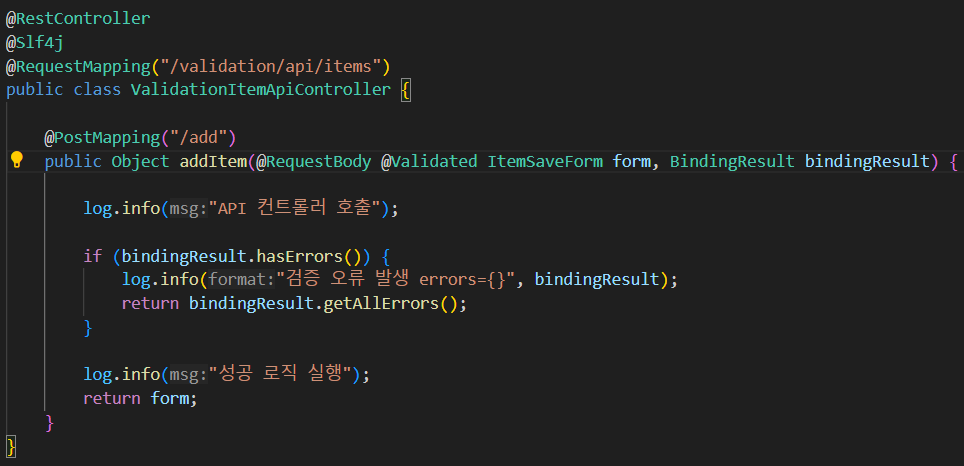 - 검증에 실패하면 BindingResult에 오류가 담기고, 이를 이용해 다양한 처리를 할 수 있습니다.